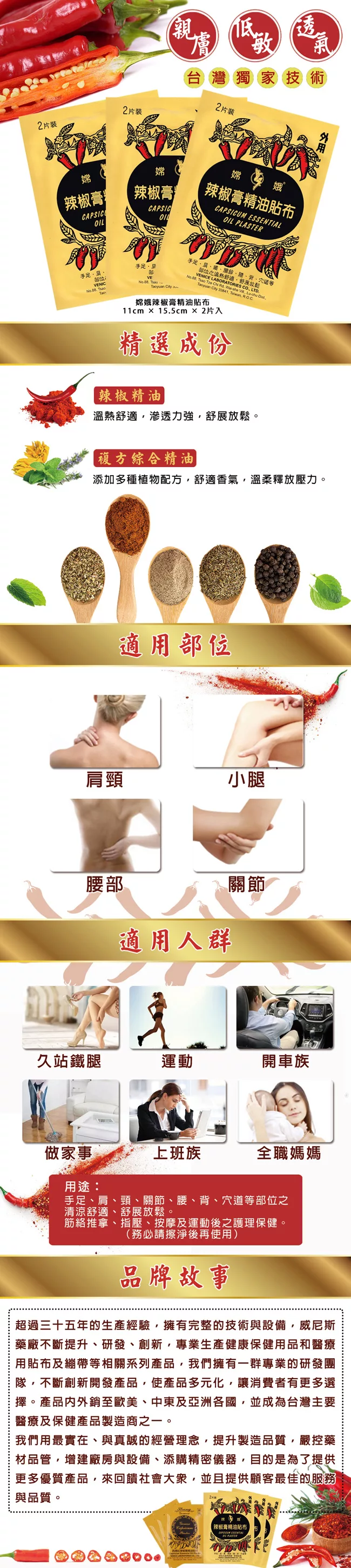 【金牌】嫦娥辣椒膏精油貼布 3入